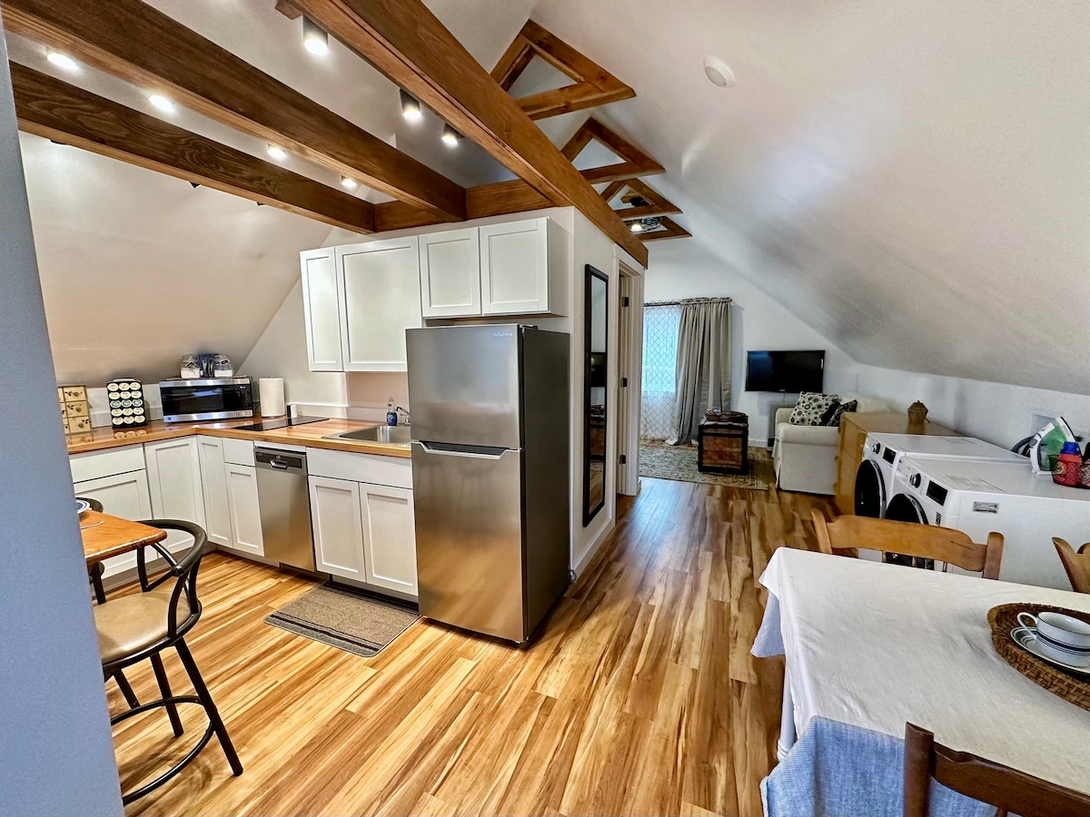 Et donem la benvinguda a The Carriage Barn. Gaudeix de la senzillesa en aquest loft tranquil i cèntric. Relaxa't en una ubicació típica de Vermont, a prop de rutes de senderisme, esquí, ciclisme, Burlington i tot el que Vermont té per oferir cada temporada. L'apartament loft pot allotjar fins a 4 persones i és un concepte obert de dues plantes amb bany complet/ dutxa i vestidor. Aparcament i a prop de mercats, botigues, restaurants, carril bici, parc infantil. Dutxa't a la nostra dutxa exterior de cedre o relaxa't al nostre espai compartit al jardí