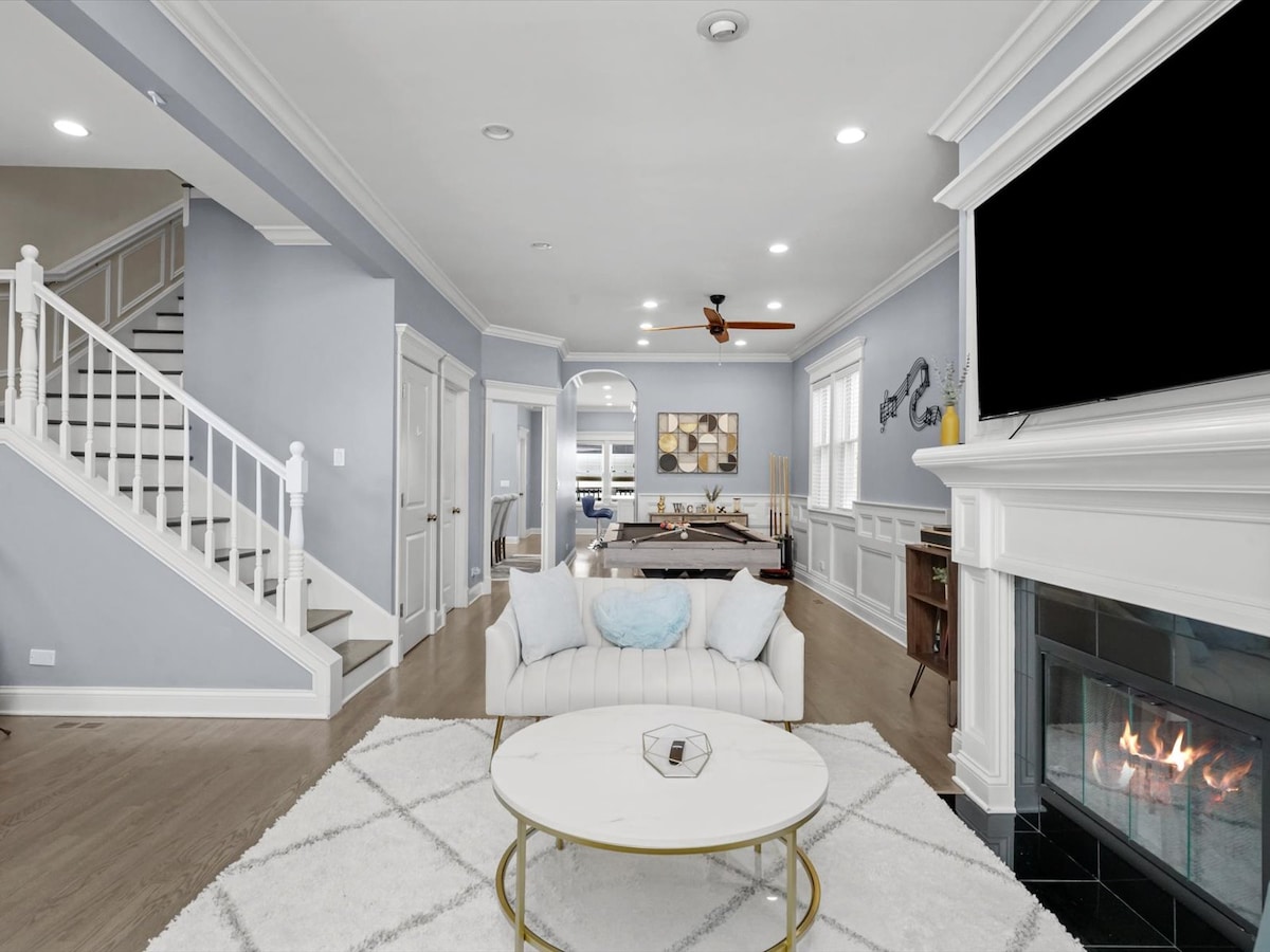 Acaba de renovar-se! Et donem la benvinguda a la teva casa lluny de casa a la bonica South Naperville. Aquesta elegant casa d'estil Tudor anglès de 4 dormitoris i 3 banys es troba en un terreny boscós d'uns 2000 metres quadrats i combina l'encant clàssic amb el confort modern. Gaudeix d'àmplies zones d'estar, una cuina totalment equipada i racons acollidors perfectes per relaxar-te, tot a pocs minuts de les botigues, restaurants i el pintoresc passeig del riu de Downtown Naperville.