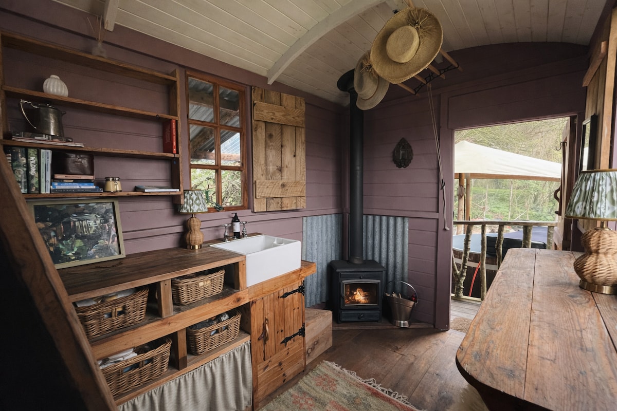 Get back in touch with nature at this luxury Shepherd’s Hut nestled in a quiet hamlet. Enjoy the large hut’s interior amid thoughtful industrial style decor and modern finishes and embrace outdoor living in your own large outdoor space, surrounded by breathtaking views of the countryside. Relax in the large fire fuelled hot tub, lounge on the deck in front of the fire pit or grab a bean bag and find a quiet spot in your own private paddock. This place offers luxurious comfort indoors and out.