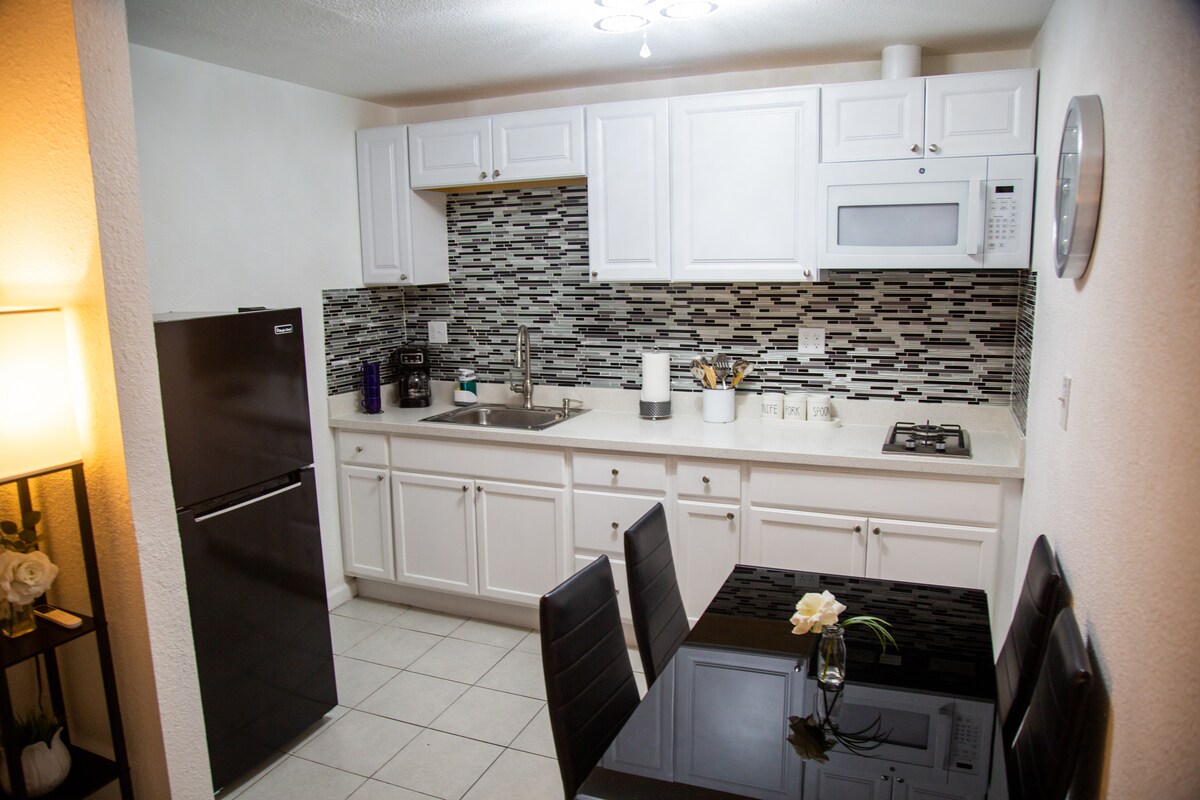 Escape to a private BOUTIQUE TROPICAL STUDIO designed for comfort, style, and relaxation. This thoughtfully curated retreat features a KING BED, cozy seating area, SMART TV, FULLY EQUIPPED KITCHEN, PRIVATE PATIO, HIGH-SPEED WIFI, IN-UNIT WASHER & DRYER, and FREE PARKING. Located in a QUIET RESIDENTIAL NEIGHBORHOOD about 15 MINUTES FROM THE STRIP & DOWNTOWN, it’s perfect for couples, solo travelers, business stays, and longer visits.