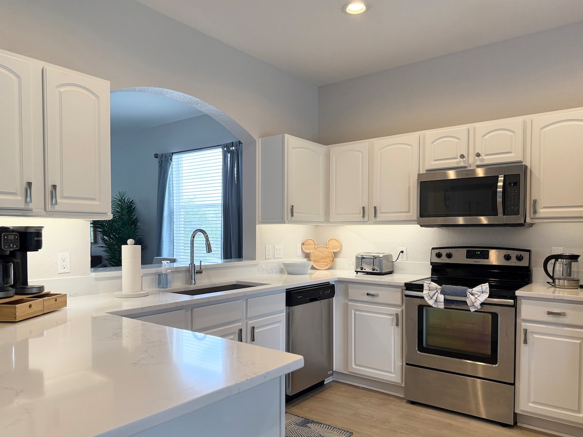 Et donem la benvinguda a la teva luxosa escapada d'una sola planta de 4 dormitoris al cor d'un complex turístic tancat a només 2,6 milles de la màgia de Disney World. Aquesta casa de vacances de disseny meticulosament ofereix no només comoditat i comoditat, sinó també una varietat de serveis del complex hoteler que prometen una estada inoblidable. La casa de vacances del teu somni no és només un lloc on allotjar-te; és una porta d'entrada a un món d'encant i relaxació. Reserva la teva estada ara i deixa que comenci la màgia!