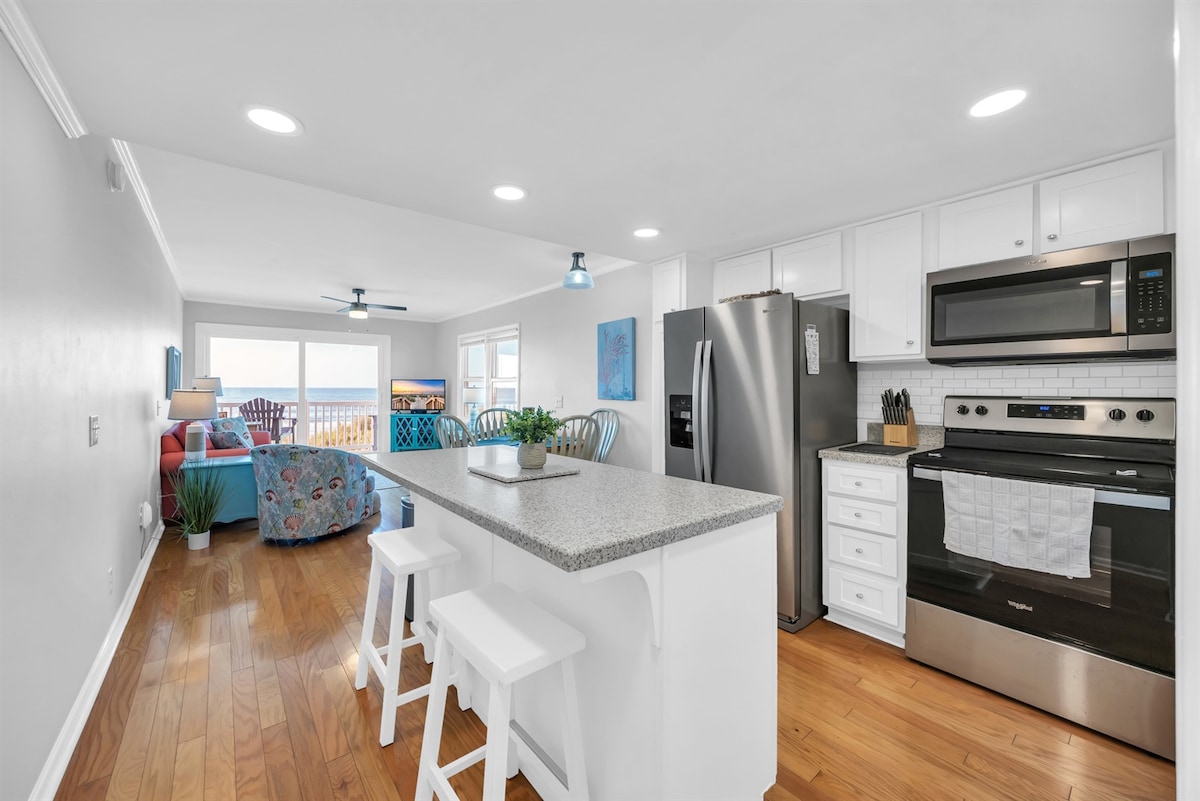 Your perfect oceanfront getaway awaits in our beautiful condo, located in the family-friendly Windy Hill section of North Myrtle Beach, known for its relaxed, family-friendly atmosphere. You are just steps from the beach and a short, convenient drive from the popular shops, dining, and entertainment at Barefoot Landing. Step inside and be greeted by stunning views of the pool and ocean through large living room windows. The space is designed for relaxation and making memories.