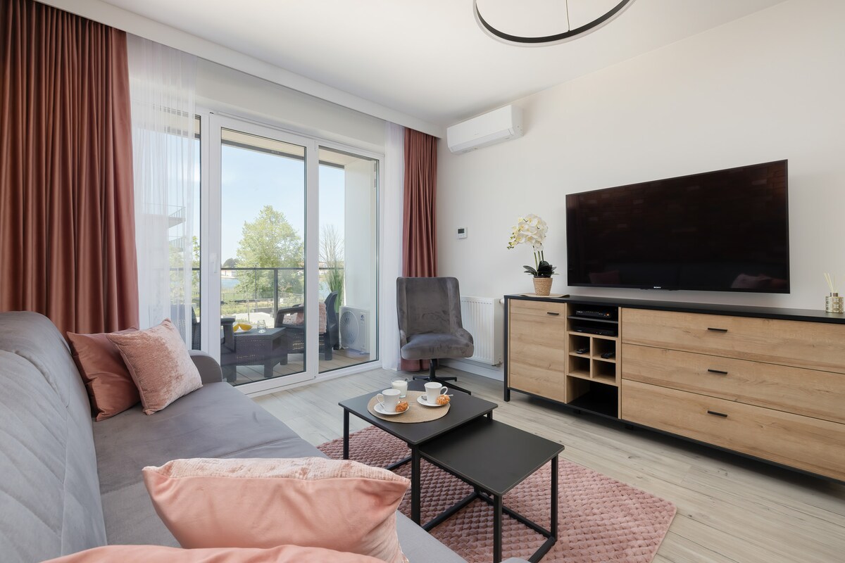 Ens complau convidar-te al nostre apartament de luxe recentment obert a RiverView, situat al prestigiós complex Bridge Apartments & Spa. El nostre pis, a la primera planta de 41 m2, ofereix una estada còmoda per a quatre persones i una vista panoràmica del riu Dziwna.