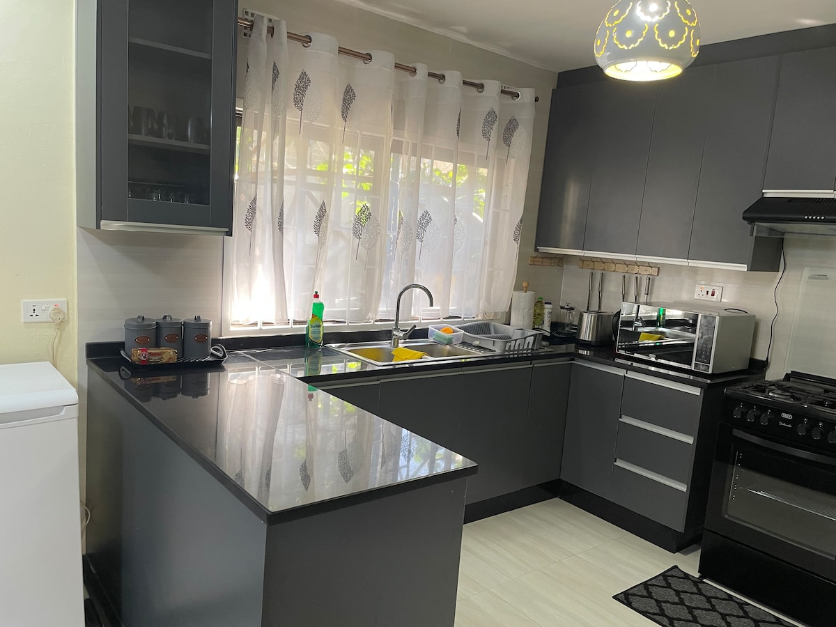 Gaudeix de la teva estada al nostre apartament cèntric en un entorn tranquil. Excel·lent ubicació a Rhodespark, a la carretera Bwinjimfumu, a 10 minuts del centre de la ciutat i del centre comercial Levy, a prop de l'hospital Pearl of Health i del centre comercial Manda Hill. Consulta la nostra guia per a més informació. Preciós apartament moblat amb bany modern i cuina de fusta totalment equipada. La sala d'estar i el dormitori tenen vista al nostre jardí tranquil amb herba i arbres exuberants per a les teves passejades relaxants i per gaudir de la natura. Gaudeix de Netflix i Showmax TV