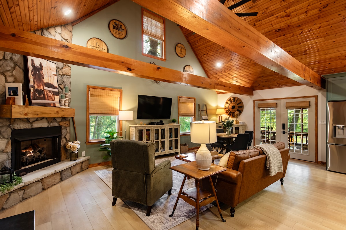 Et donem la benvinguda a la Kentucky River Bourbon Cabin! Relaxa't i recupera't en aquesta acollidora cabana situada en un entorn boscós i a la vora del riu Kentucky! Aquí trobaràs pau i serenitat en plena natura amb una vista directa de l'aigua. Aïllat i privat, però a prop de botigues, restaurants i moltes atraccions turístiques, com ara les principals destil·leries i cellers. Four Roses, Wild Turkey, Woodford Reserve i Buffalo Trace són a un cop de cotxe.