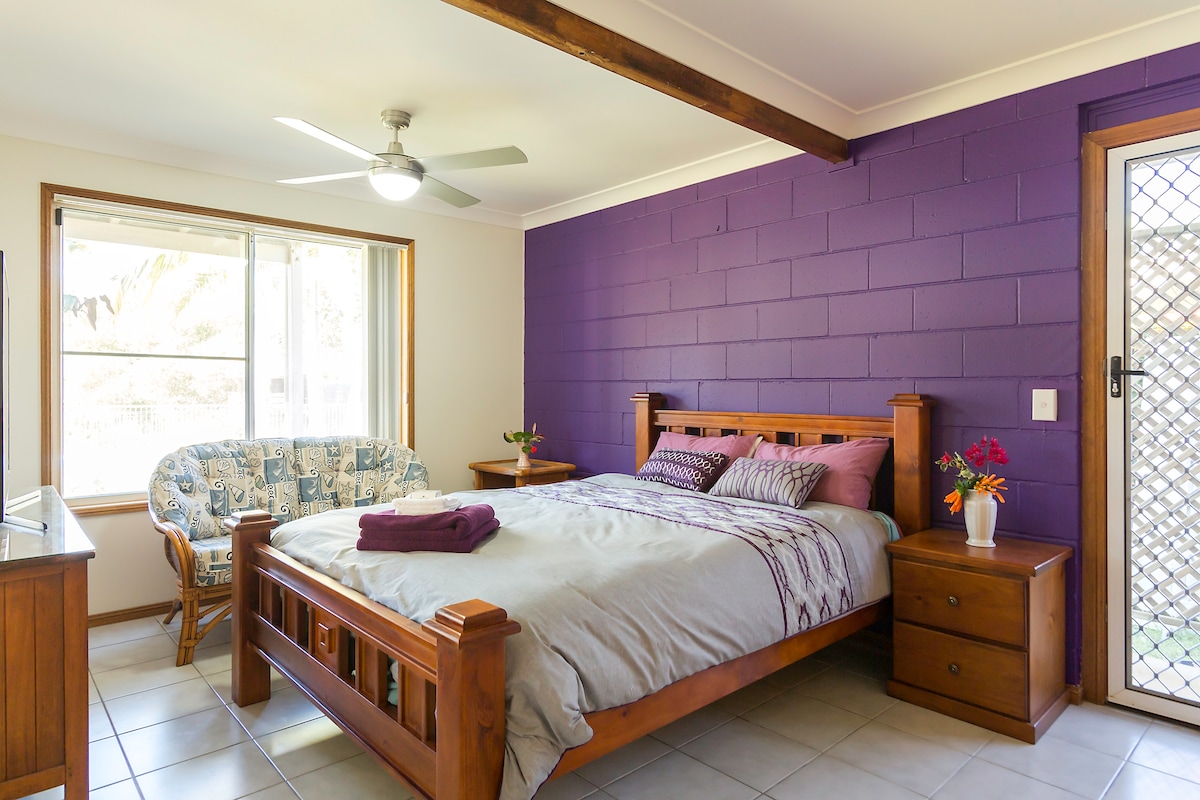 Separate self contained apartment with your own private entry, sitting area, full kitchen, bathroom, laundry, bedroom with queen size bed. Everything you need to enjoy your stay on beautiful Bribie with reverse cycle air conditioning, ceiling fans, free wi-fi and Netflix. Central location 5min walk to Bribie's major shopping centre for your groceries, beverages and restaurant options. 10min walk to picturesque Pumicestone passage, 20min walk to Sandstone Point Hotel & 10min drive to surf beach.