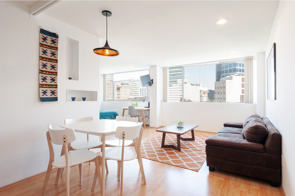 Smart & cozy Airbnb in Mexico City. This centric loft is in Napoles near WTC (World Trade Center), near Condesa neighborhood and near Roma neighborhood, both within a 30min nice walk or a 10 min drive from the apartment. Free Wifi. Small desk for home-office. Pet- Friendly. Fulled equipped. 24/7 security guard. Kitchen and bathroom amenities. Free movies in 55" smart TV. Queen Size bed + Double Sofa bed. Washer dryer machine inside the apartment.