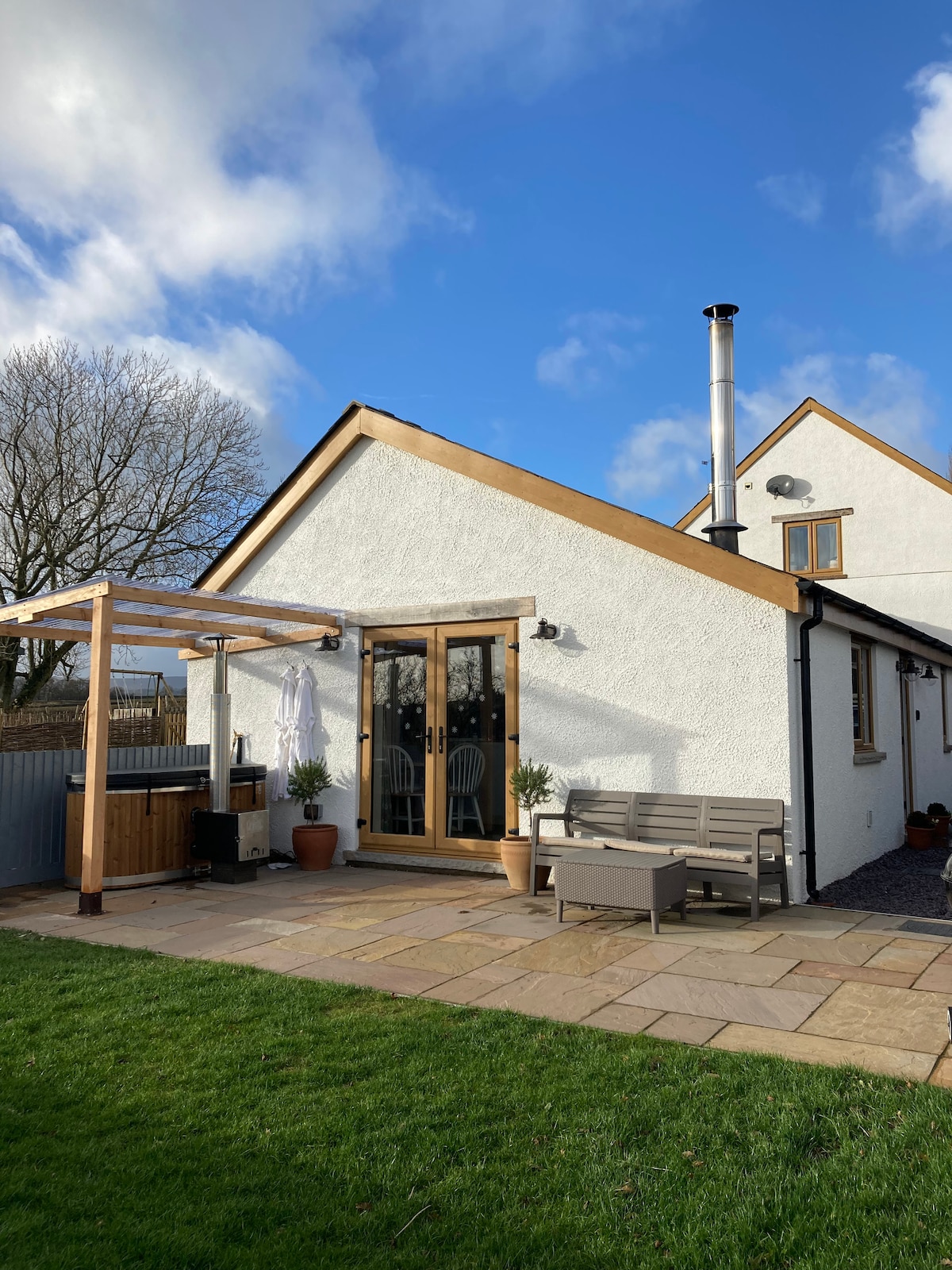 El Homelands Annexe és una propietat totalment independent amb entrada pròpia al costat del nostre bungalou, amb aparcament fora de la carretera i un petit jardí a la part davantera. La ubicació és rural, per la qual cosa necessitaràs un vehicle o un servei d'autobús local a 1 milla de distància. El pub local The Fountain Inn és el pub més proper obert de dijous a diumenge i està a 20/30 minuts a peu. Tenim una ubicació ideal per a caminants, ciclistes o una estada relaxant. Ideal per a l'estiu o l'hivern.