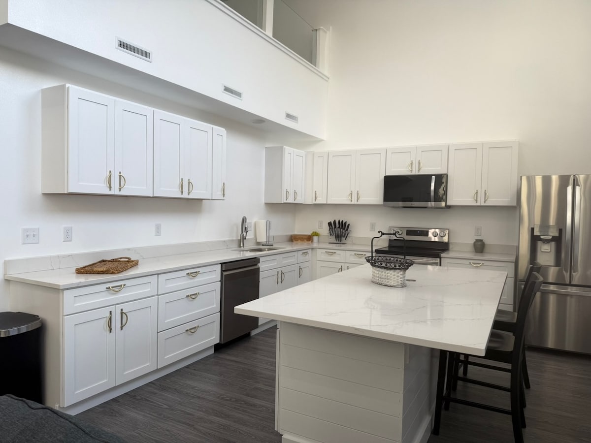 Gaudeix d'una experiència elegant en aquest allotjament cèntric. Aquest pis disposa d'un dormitori amb un llit de matrimoni i una cuina/ sala d'estar oberta. El sofà té un llit amagatall de mida queen. Un bany amb dutxa a peu i rentadora i assecadora de mida completa per a la teva comoditat. L'entrada i l'accés a l'aparcament es troben a l'aliat, darrere de l'avinguda principal.
