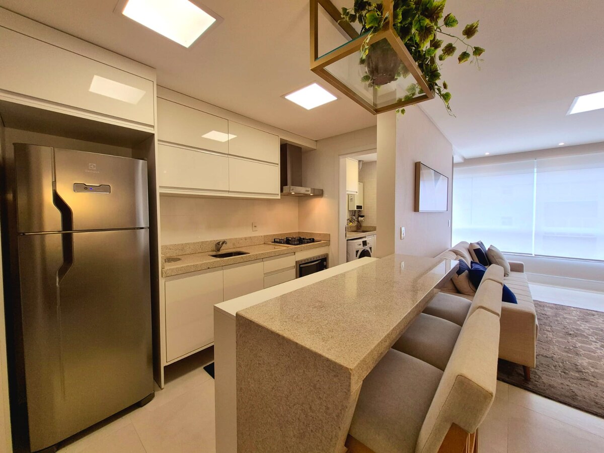 Pis nou, modern i acollidor en una ubicació fantàstica a Capão da Canoa, a pocs minuts de la platja i del centre de la ciutat. Ideal per a parelles o famílies petites. Què trobaràs a l'espai: • Wifi ràpida • Espai de treball • Aire condicionat • Barbacoa • Cuina equipada • Televisor intel·ligent • Decoració contemporània • Garatge ✨ Un lloc perfecte per relaxar-se amb comoditat i estil. 👉 Assegura't una estada ara!