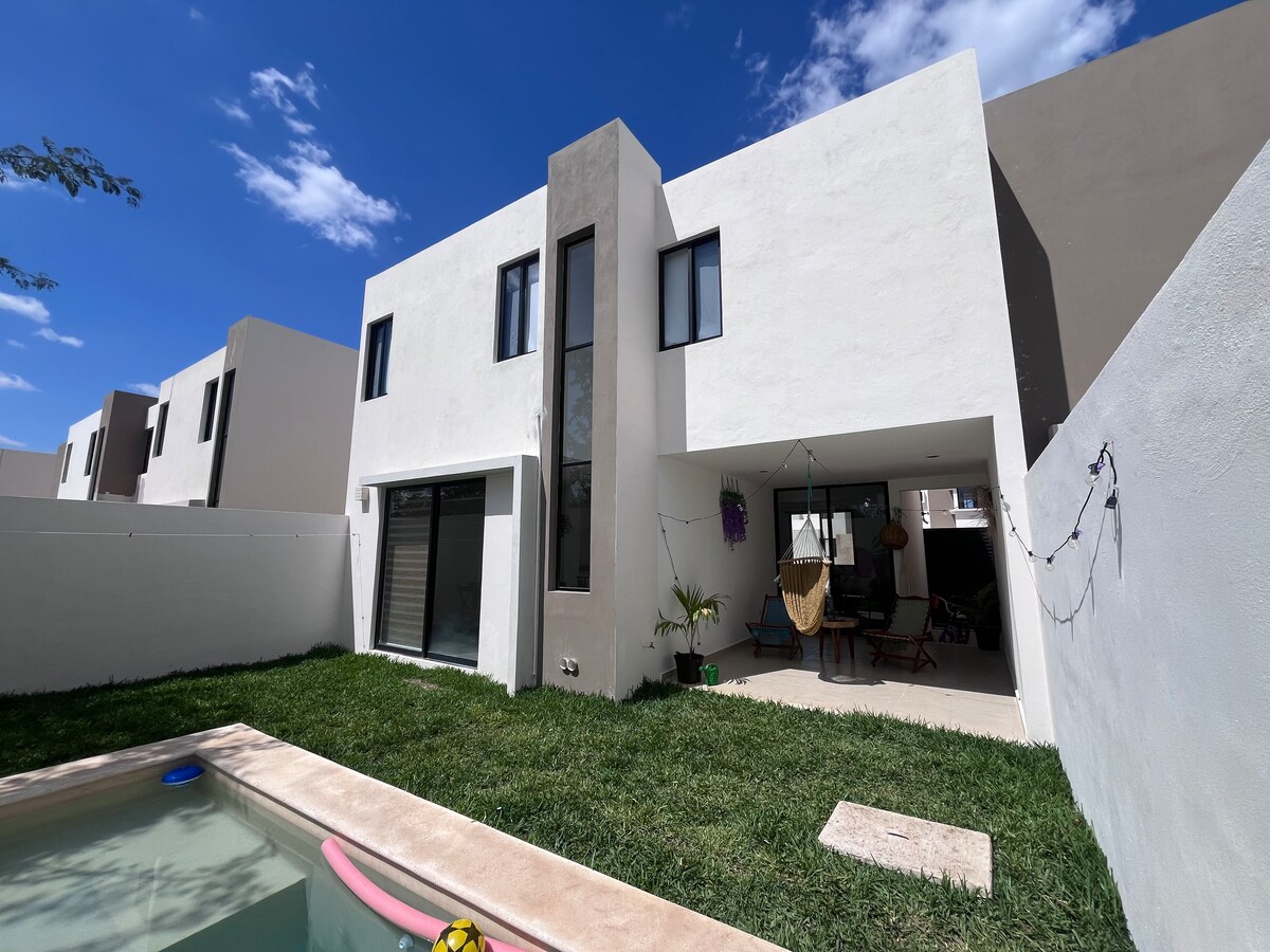 La meva casa és la seva casa! Gaudeix d'una casa nova i ben equipada en una comunitat tancada que inclou la teva pròpia piscina! Tant si vols passejar pel centre de Mèrida, explorar un cènote o passar el dia a la platja, gaudiràs tornant a casa a Casa Del Sol. Aquest allotjament té 3 dormitoris amb unitats d'aire condicionat a cadascun i una unitat gran a la sala d'estar/menjador. Disposa d'una cuina ben equipada per a la teva comoditat. A la casa hi ha 2 llits queen i 1 llit king. Wifi: senyal fort a tota la casa.