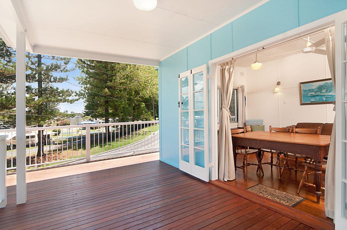 Relaxa't en una de les cabanes de platja originals de Yamba a la porta de Pippi Beach. Recentment actualitzada, la caseta dels anys 60 ha estat restaurada per afegir un ambient fresc i acollidor, a la vegada que manté l'encant de l'antiga escola. La caseta, perfectament situada, gaudeix del so de l'oceà i a poca distància a peu de la ciutat. La sala d'estar s'obre a la terrassa i a la zona del pati cobert. El lloc perfecte per gaudir d'un àpat o d'un descans. NOVETAT: sistema dividit d'aire condicionat a la sala d'estar i als dormitoris