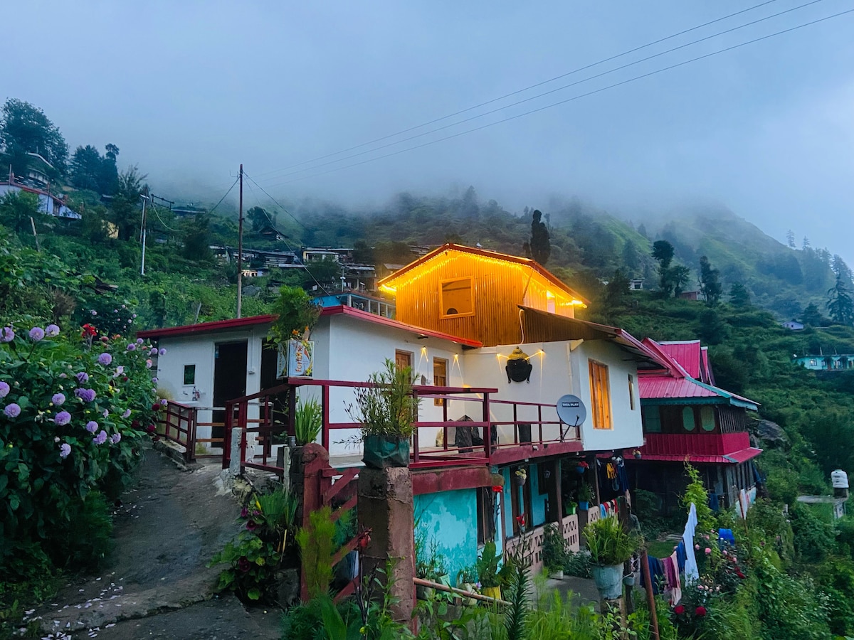 The Red House in Raithal village (2250 mtrs altitude), Uttarkashi District, Uttarakhand de camí a Dayara Bugyal Trek. El poble de Raithal és popular entre els excursionistes experimentats, ja que és el campament base de Dayara Bugyal. La casa rural ofereix unes vistes absolutament impressionants de les serralades de l'Himàlaia, els prats verds i la biodiversitat (com es pot veure clarament a partir de les fotos). Els hostes han de pujar un turó a 400 m del centre del poble.