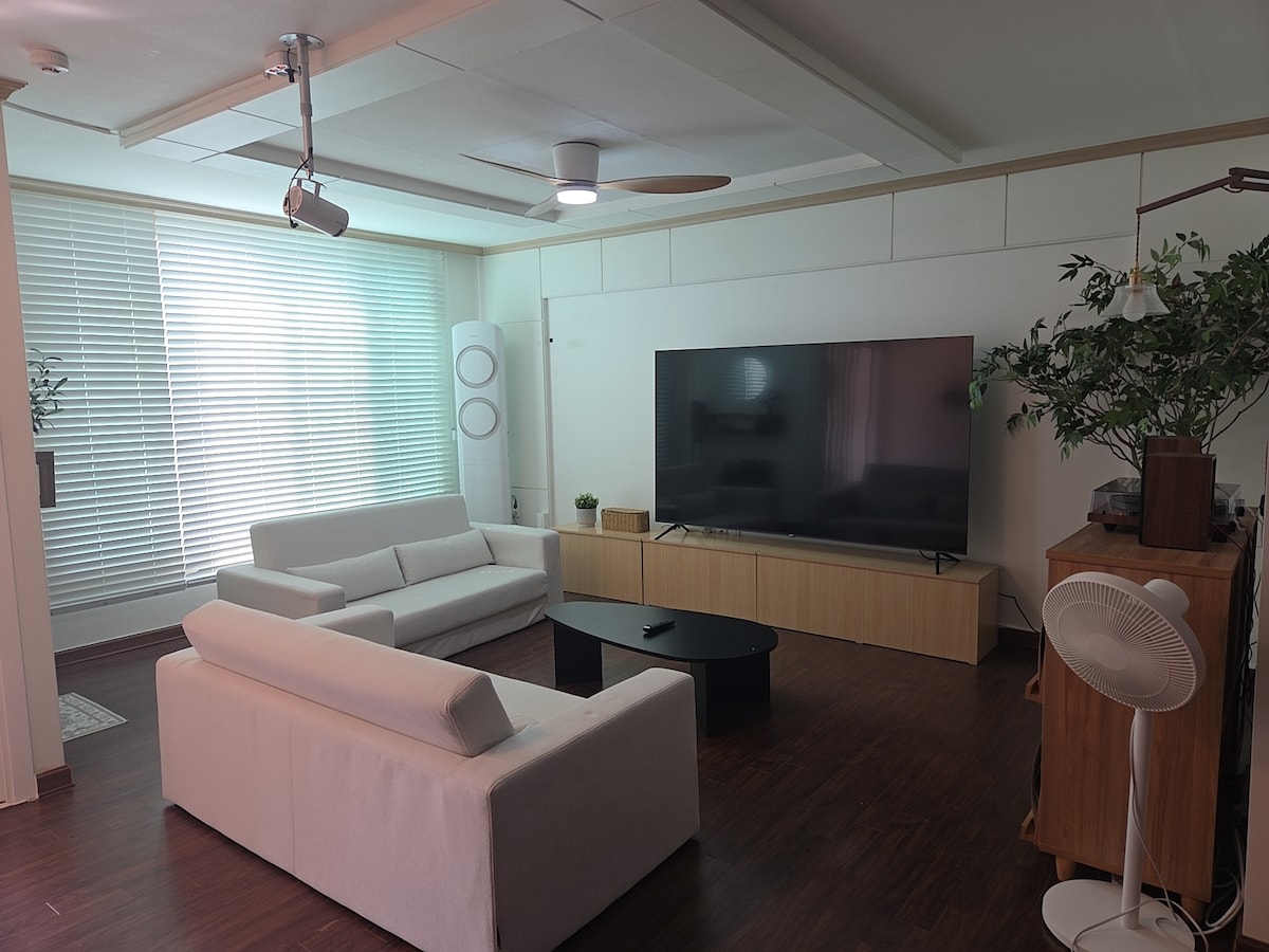 Yeonhwa 49 és un espai d'estada de primera qualitat amb unes finestres precioses que capturen el paisatge verd com una imatge:) 1 i 2 plantes senceres de▷ 54 pyeong (182 m2) (excloent la sala de gestió de la primera planta) ▷ Pati espaiós i terrat amb vistes als camps Totalment equipat amb▷ mobles, estris i llençols de primera qualitat Estació d'Ulsan (▷KTX, SRT) a 20 minuts del servei de recollida de l'amfitrió a l'estació a petició de l'encarregat de reserves