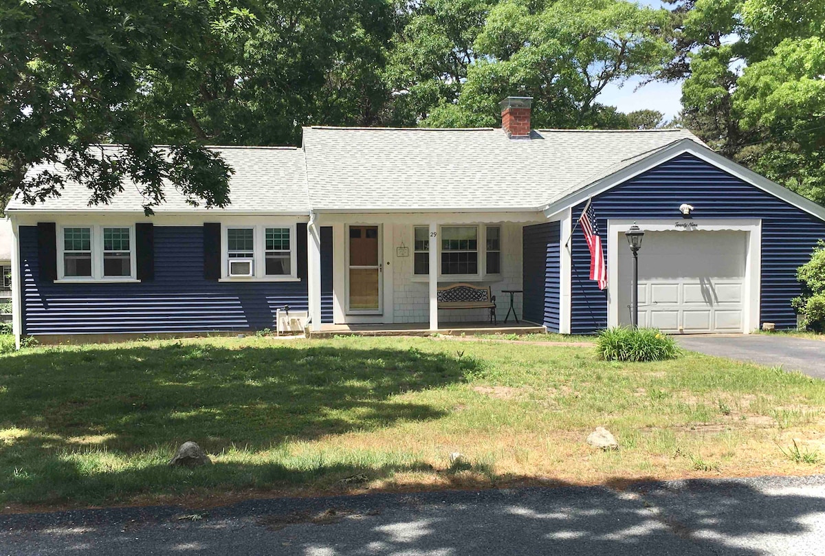 Your perfect Cape Cod escape awaits! Coastal chic home base w/ king bed & AC near all Cape Cod has to offer. <8 min to pristine beaches, endless local shopping, entertainment & dining. Short walk to Wings Grove Beach to fish, kayak or swim in serene Long Pond - perfect for kids! Take in nature while biking the Cape Cod rail trail (4 min away) & ride all the way to the outer cape! BBQ, enjoy the firepit, fenced in yard, and outdoor shower. On cool nights, cozy up next to the indoor gas fireplace.