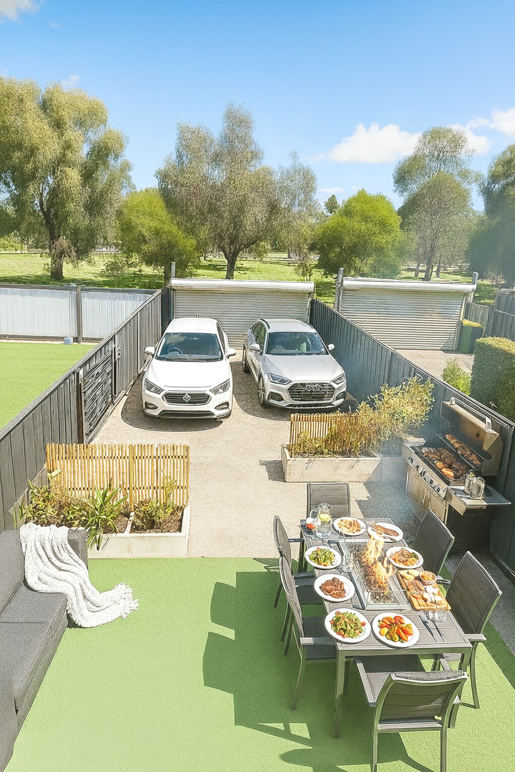 This spacious 4-bedroom home is designed for comfortable family stays. The layout offers plenty of room for parents and children to relax together or enjoy privacy when needed. The home features 5 comfortable beds, a bright living area, a fully equipped kitchen, and a private backyard facing the park, creating a calm and family-friendly atmosphere.