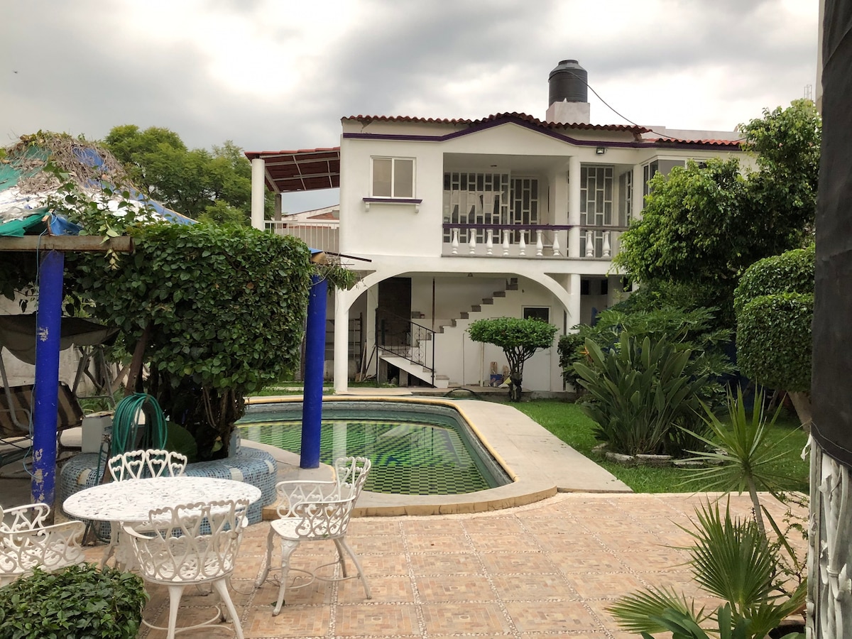 Lluny del soroll de la ciutat, amb unes vistes precioses i unes postes de sol meravelloses. Desperta't amb els sons de la natura, relaxa't a la piscina, juga a billar o pren el sol a les gandules. Pots preparar el menjar perquè tens tot el que necessites per fer-ho. Pots anar-hi en cotxe o agafar el transport públic que hi ha a 4 minuts a peu. Estem a 10 minuts d'Oaxtepec i de la màgica ciutat de Tlayacapan; a 30 minuts de Cuautla i a 45 minuts de Tepoztlán.