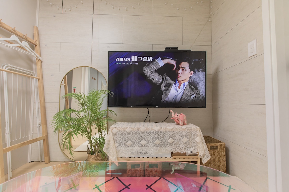 És una habitació moderna i còmoda. ▪️Accés independent amb el mòbil A 5 minuts a peu de▪️ KTX, estació SRT Busan Aparcament ▪️gratuït/estació de càrrega de vehicles elèctrics a l'aparcament Sistema d'aire condicionat/calefacció òptim per al control de▪️ cada habitació Accessibilitat còmoda a▪️ Nampo-dong, Seomyeon, etc. ▪️Haeundae, Gwangalli Aire condicionat del sistema▫️ LG Gestor de roba de vapor de ▫️LG Nevera ▫️Samsung ▫️Rentadora Samsung ▫️ Assecadora Samsung Rentaplats ▫️Samsung ▫️ Gamma de forns Samsung ▫️Plats + estris de cuina (condiment X) ▫️Televisor intel·ligent de 65 polzades (compte Ott-in) Wifi ▫️d'alta velocitat