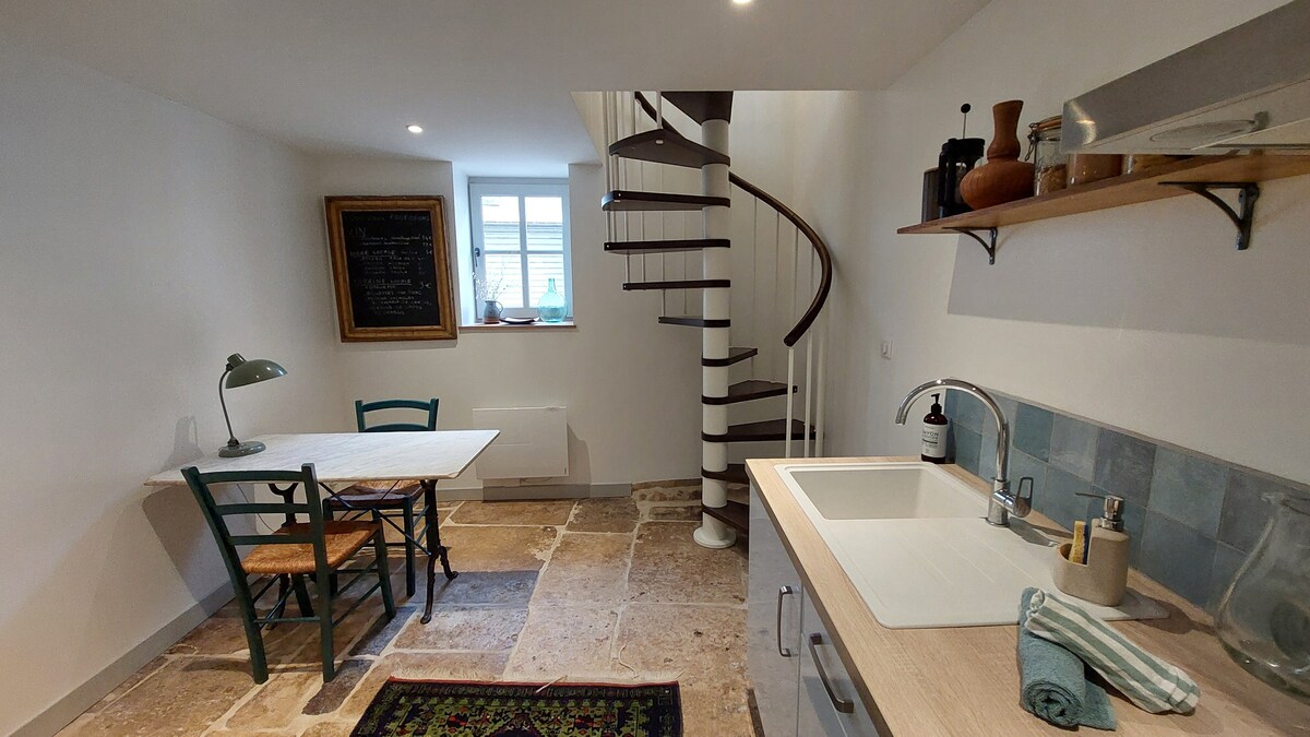 A una hora i mitja de París ,entre Joigny i Sens, oferim un estudi ben equipat i independent en una casa típica de Borgonya. Aquest estudi es va posar en l'antic establiment. Aquest estudi té una entrada independent i pots aparcar al pati, que està completament assegurat per una porta. Els dies assolellats, proporcionarem una taula i cadires de jardí. En reserva , podem servir-te l'esmorzar per 10 euros /persona.