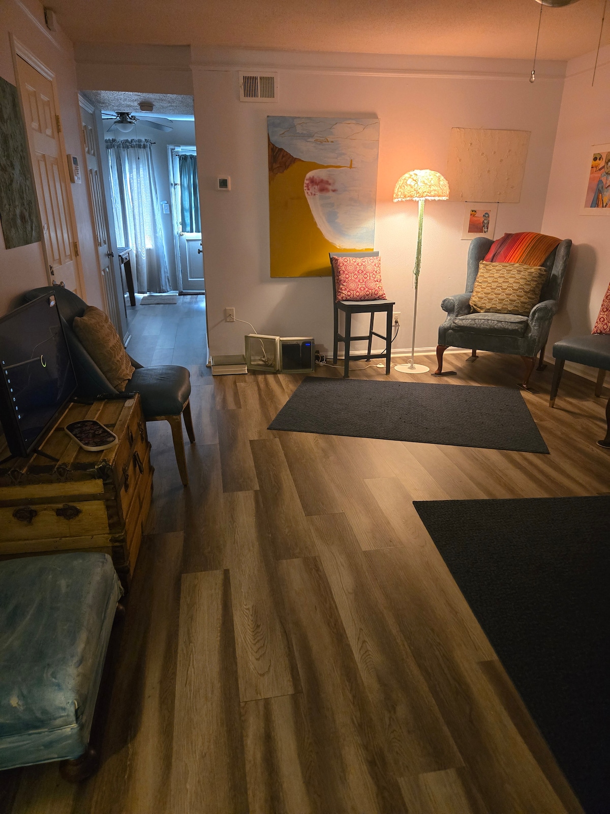 Relaxa't i deixa't anar en aquest pis de 2 dormitoris i 2 banys, situat a la primera planta i renovat fa no gaire, a prop del llac Wylie. Dissenyat amb molta cura i amb una decoració encantadora inspirada en el llac, l'espai ofereix un ambient acollidor però renovat, perfecte per a una escapada de cap de setmana, per gaudir d'activitats al llac o per visitar la família que viu a prop. Gaudeix d'un accés fàcil sense escales, a més d'estar a prop de restaurants i botigues de la zona i de tenir accés al llac. Tant si vens aquí per relaxar-te com per viure aventures, en aquest refugi ho tindràs tot a l'abast.