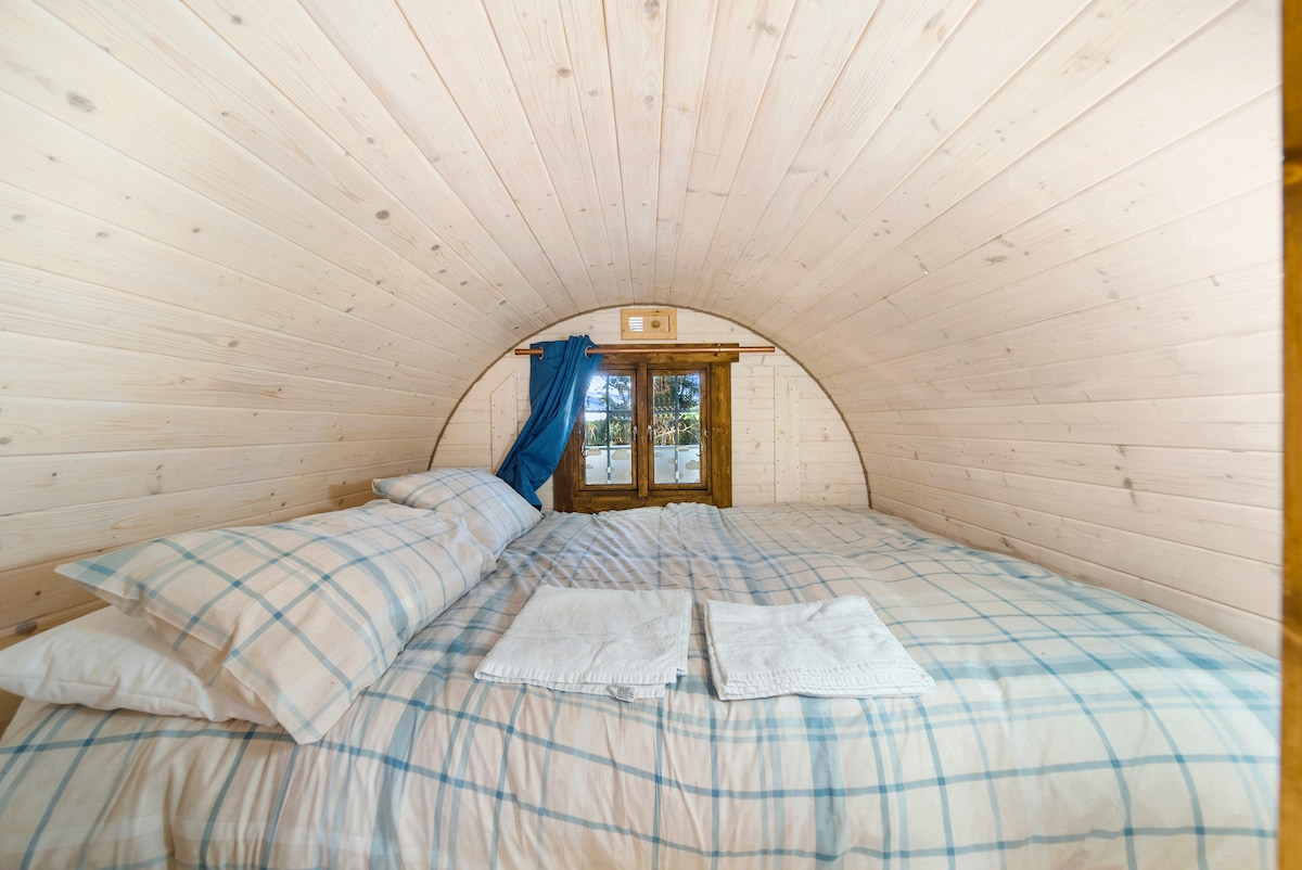 Glamping, però no com ho saps. Les nostres luxoses cabanes de pastors es troben en els llocs més idíl·lics del camp, situats i amagats entre els arbres, amb vistes a un gran llac tranquil. A diferència del glamping normal, les nostres cabanes estan dissenyades per a aquells que desitgen una estada més relaxant, una estada que marca unes quantes caselles més. Les cabanes estan equipades amb cuina i bany propis, un llit doble còmode, calefacció sota el terra i una zona exterior per seure.