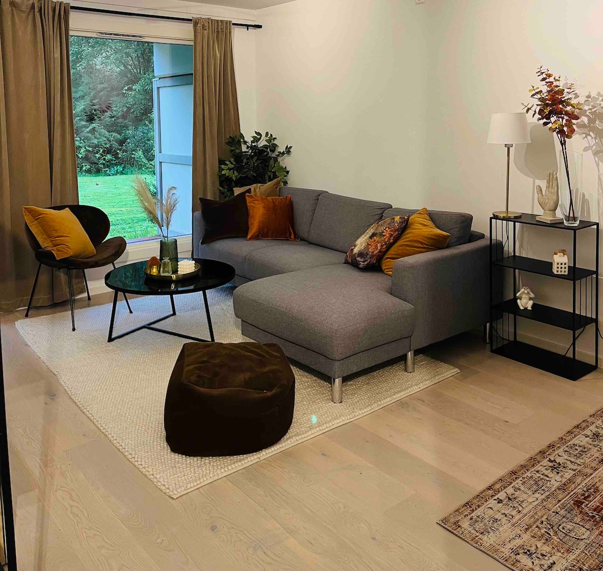 Pis acollidor i modern. A prop de l'aeroport i en un barri tranquil, envoltat de la bella natura escandinava. A 16 minuts del centre de la ciutat en cotxe. L'apartament té tot el que necessites, incloent-hi algunes opcions de cuina senzilles. Abans hi havia equipament de gimnàs al pis, però això es va traslladar al garatge. Preguntes freqüents: «Està a poca distància a peu de l'aeroport?» No, està a uns 10 minuts amb cotxe. Si vols anar en transport públic, hauràs de agafar un tren lleuger i després un autobús.