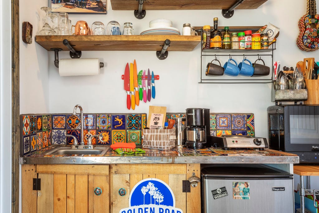 Aquest oasi del desert és l'escapada perfecta per als que busquen relaxar-se i relaxar-se en un entorn tranquil amb unes vistes impressionants. La casita té una temàtica retro amb sòls epoxi increïbles, sostre de rajola, un llit queen size súper còmode, zona de menjador, parets de rajola de pissarra a tot el bany i una zona d'estar amb un sofà. Hi ha una mini nevera, un microones, una tostadora, una estació de cafè, una nevera de menjar rodant, una barbacoa, una foguera de gas a l'exterior, una hamaca impressionant i un porxo per contemplar les estrelles sense contaminació lumínica.