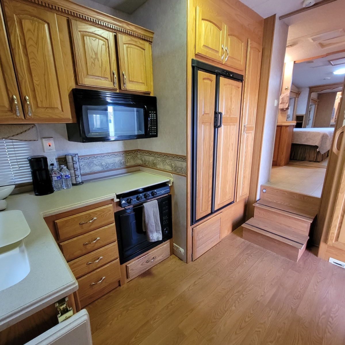 Es tracta d'una cinquena roda més antiga, perfecta per a aquells que busquen un allotjament bàsic, net i econòmic. No és de luxe, però té els elements bàsics: un matalàs queen, un sofà que es converteix en un llit, una cuina senzilla, un bany i una còmoda disposició per dormir per a 2 persones. L'allotjament es manté fresc i climatitzat amb un sistema mini split per a la teva comoditat. Tingues en compte que es tracta d'una autocaravana més petita d'uns 25 peus.