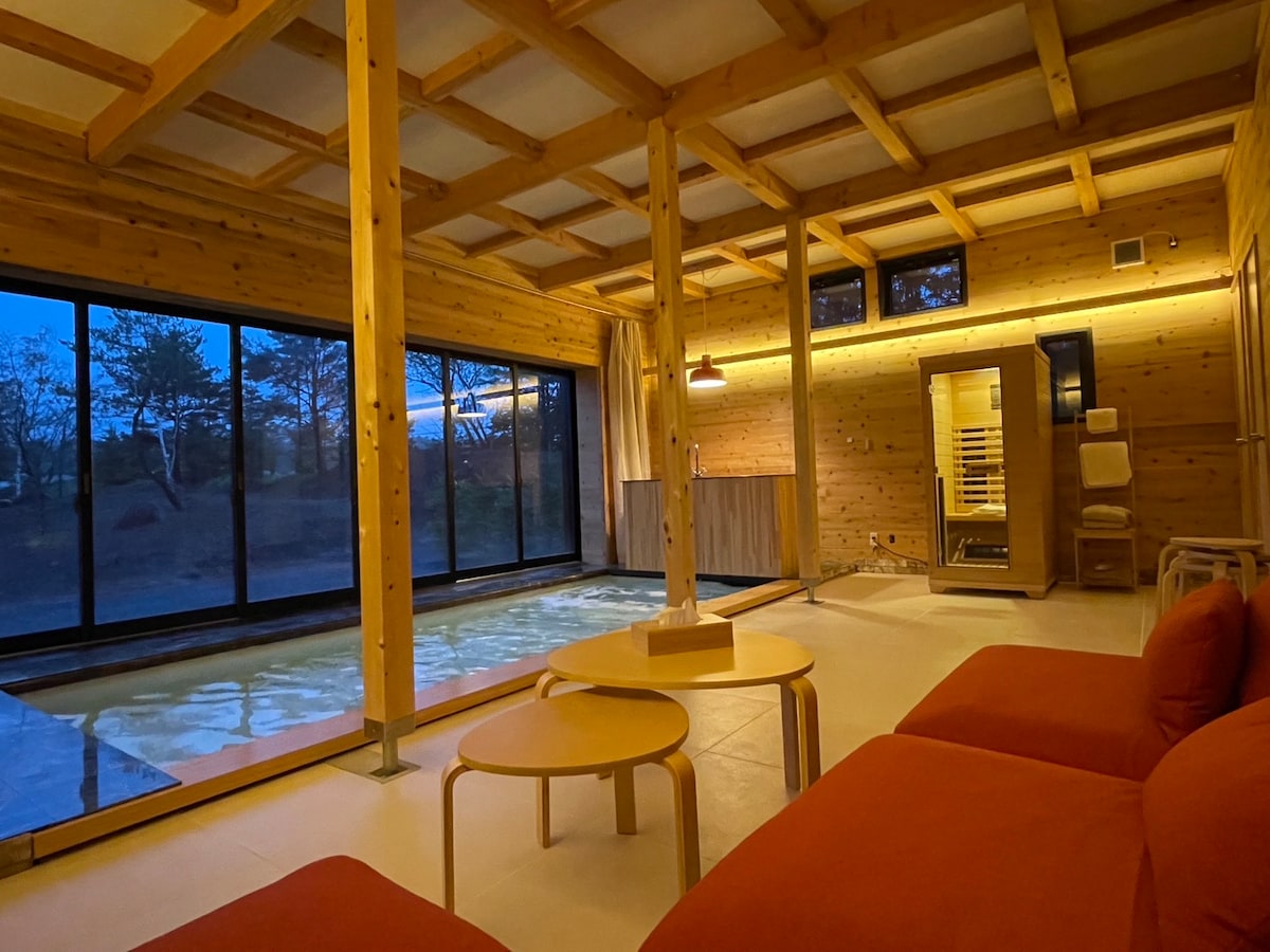 Obert dissabte, 20 de desembre!Una casa de troncs moderna com un refugi per a adults, situada en un bosc de coníferes tranquil als peus del mont Asama.Pots relaxar la ment i el cos, envoltat de l'aroma i la calidesa de la fusta. Productes nòrdics diversos, IITTALA i plats àrabs de Finlàndia.Pots sentir Escandinàvia a través de la teva estada. Caseta amb sauna finlandesa, bany d'aigua, espai de relaxació.Gaudeix d'una sauna al bosc amb l'aroma suau dels xiprers. A l'espai exterior, podràs gaudir d'una barbacoa amb els teus en plena natura. També hi ha molts llocs d'interès turístic a prop que poden gaudir persones de totes les edats.També està ben situat a Kusatsu/Manza. Esperem que hagis gaudit de la teva estada amb nosaltres. Tingues en compte que, a causa del fred, la temperatura exterior és molt baixa durant els mesos d'hivern.De desembre a març, la banyera exterior, la dutxa i la barbacoa no estaran disponibles.Tingues-ho en compte. * Disposem de sauna.