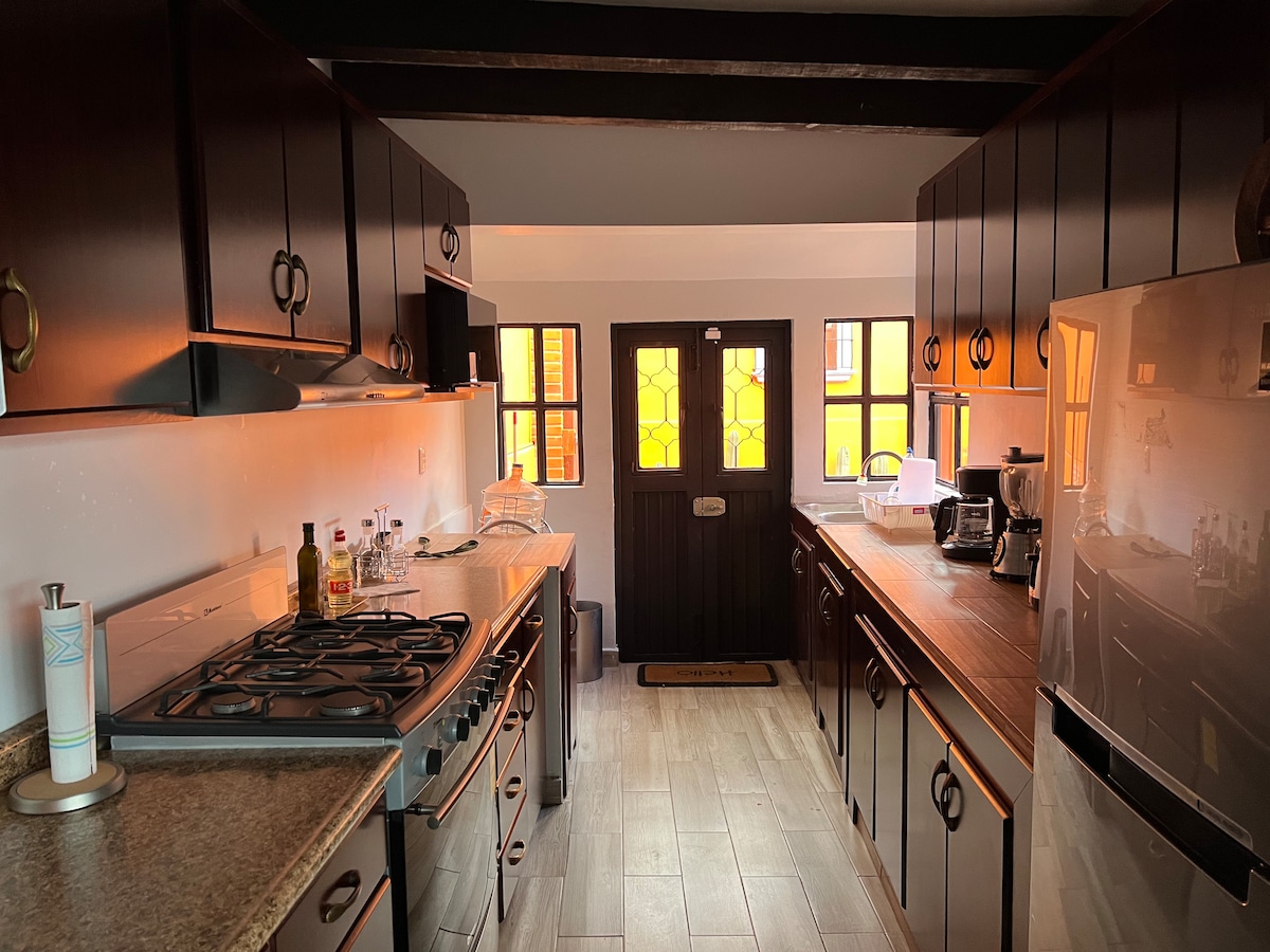 Allotja't en aquest espai únic situat al centre de la bonica ciutat de Zacatecas de pedrera i plata, comença el dia esmorzar a les boniques cafeteries que hi ha davant de la nostra catedral a només 8 minuts a peu, i després gaudeix d'una vista panoràmica a la nostra terrassa davant del Museu Rafael Coronel, exposat de la col·lecció més gran de màscares del món. Casa Coronel on es va fer l'últim Pepe Aguilar "Digues el que diuen". Vine a veure-ho!