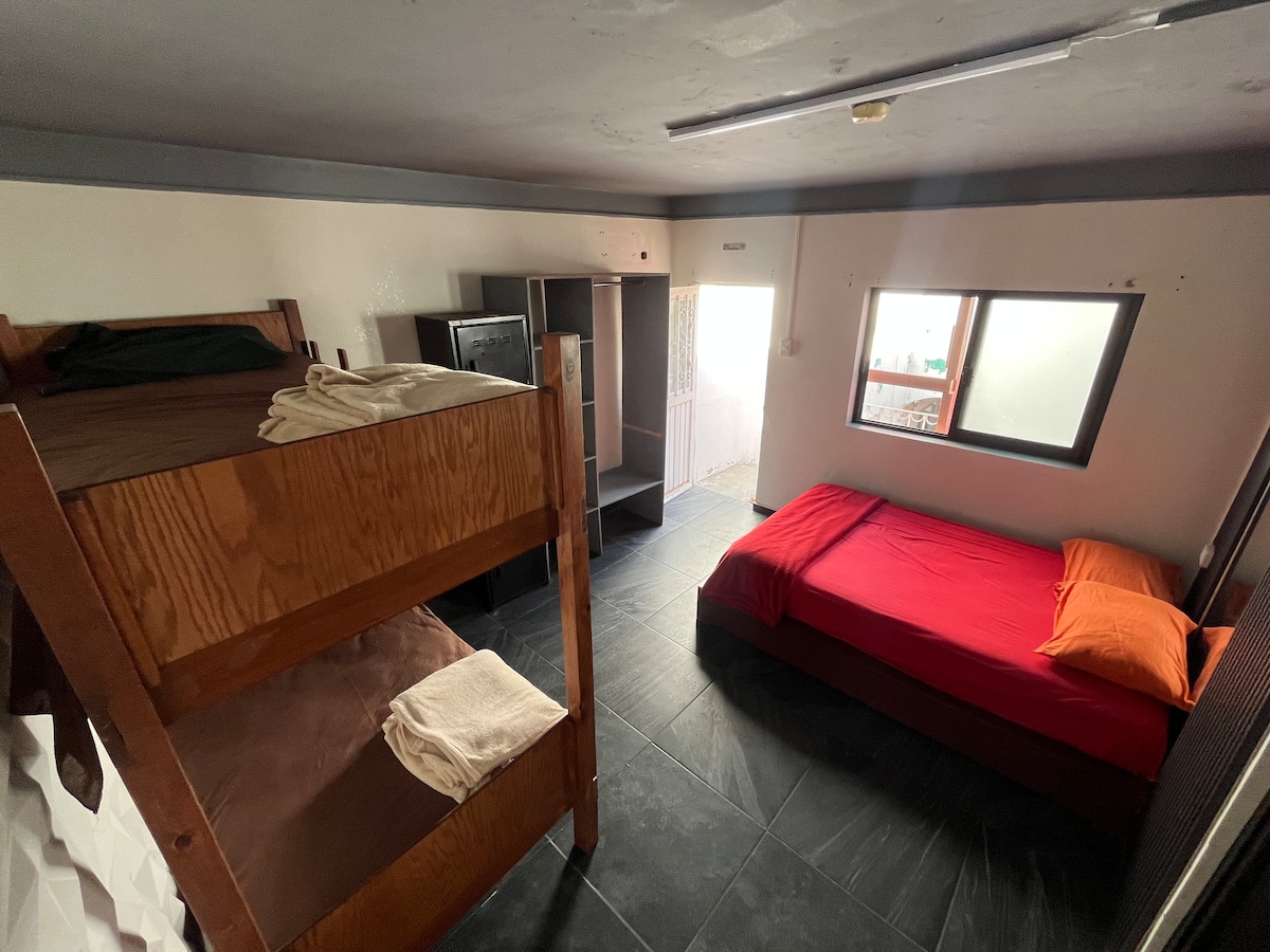 Habitación privada para hasta 3 personas • Litera: cama matrimonial (abajo) + individual (arriba) • Baño completo dentro de la habitación • Escritorio cómodo para trabajar o estudiar • Clóset abierto y espacio funcional • Ideal para estancias cortas o medias • Wi-Fi y servicios incluidos • A pasos del centro de Aguascalientes • Zona tranquila, segura y bien ubicada • Perfecta para viajeros solos, parejas o grupos pequeños