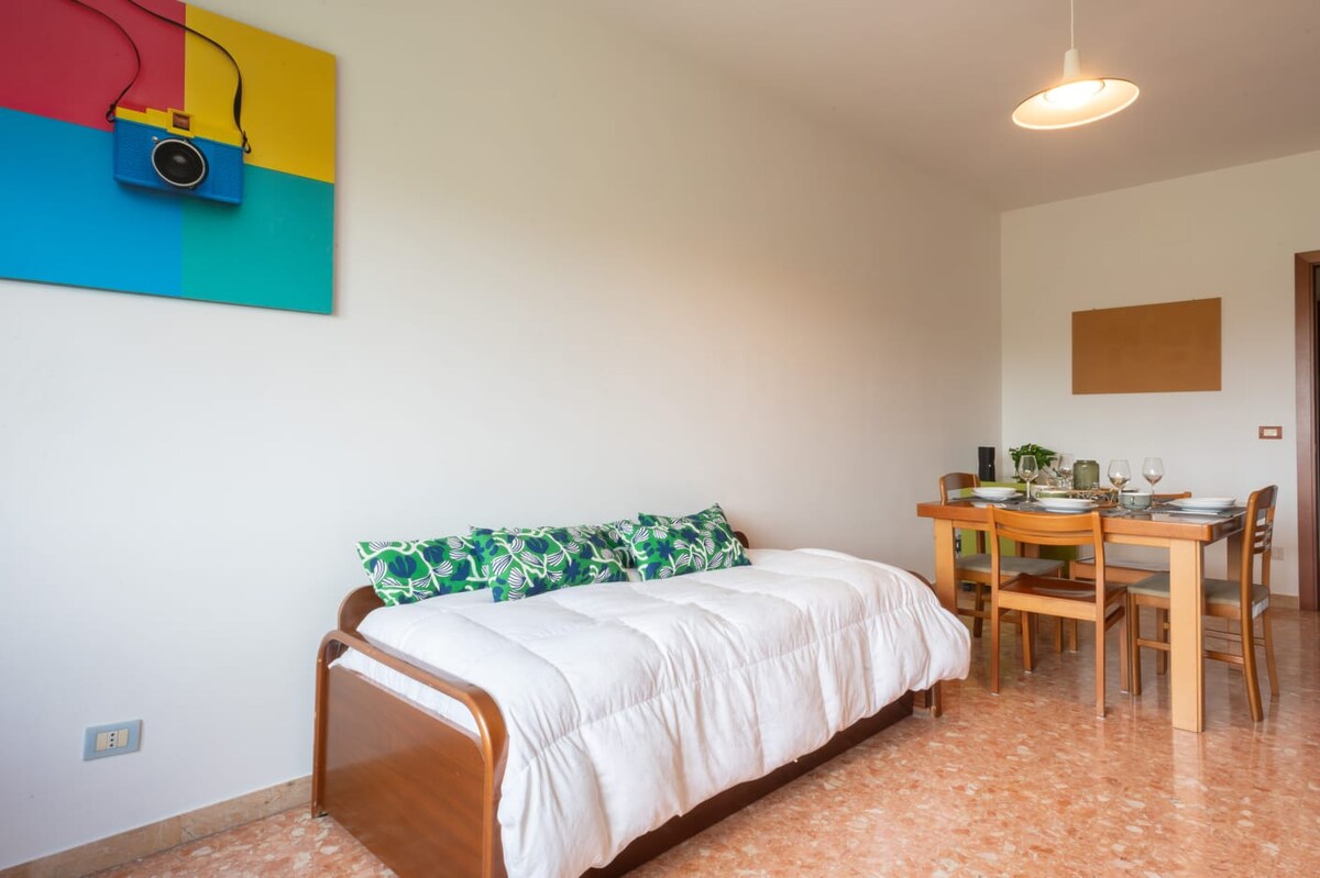 Recentment reformat i al centre de Frascati, a 10 minuts a peu de l'estació de tren que connecta Frascati amb Roma Termini (30/50 minuts depenen del tren que hagis agafat). Des del centre de la Piazza Marconi pots agafar autobusos a altres zones del Castelli Romani i del metro Anagnina. Ofereix cuina totalment equipada, televisor intel·ligent, wifi, llit doble, sofà llit, bany i un petit espai a l'aire lliure. Hi ha botigues de queviures, bars i restaurants. Impost turístic d'1,30 € per nit per persona