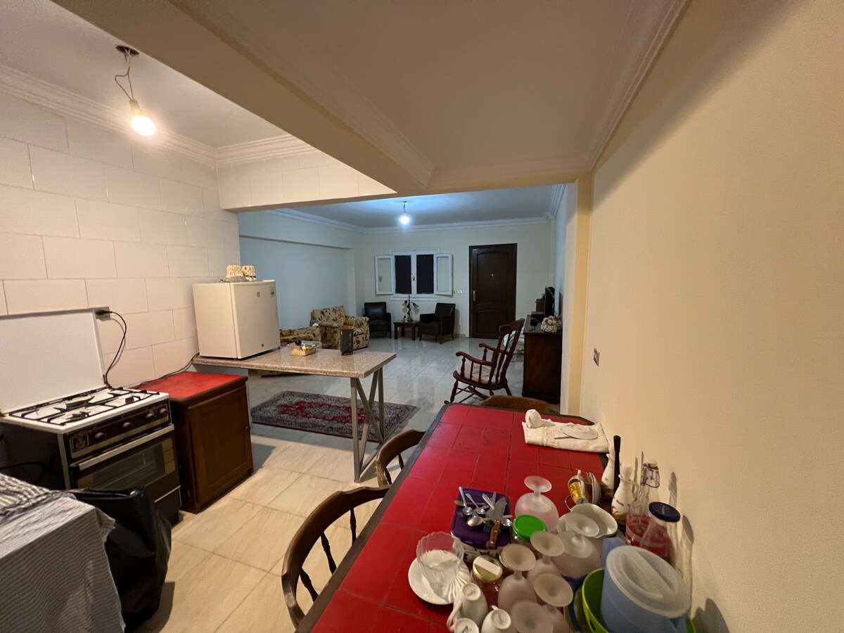 Our Nice hotel apartment offers 3 bedrooms, kitchen, hall and 2 bathrooms we're very near to the public services directly on the road, very nice and quiet place and the apartment is new and everything in the apartment is not yet used, the apartment is neat and clean and very nice to stay and relax, the AC is available and also wifi and very low cost compared with the hotel rooms.