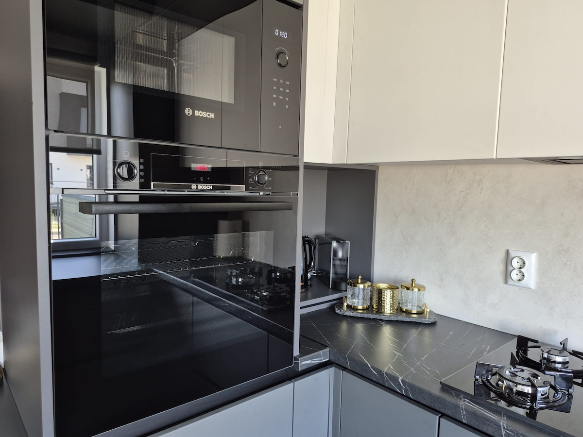 Amb vistes al casc antic de Brasov, un pis modern de dues habitacions dissenyat per envoltar-te amb comoditat. Assaboreix el teu cafè preferit a la nostra terrassa de dos nivells, gaudeix dels mobles personalitzats, la decoració escollida amb cura i les impressionants vistes de la ciutat en 3 costats: el casc antic, la ciutat, la Livada Postei i la plaça de la Universitat, tot a la vista des del Juniper. A prop de la carretera d'accés Warthe a les pistes de Poiana Brașov, el pis disposa d'una cuina totalment funcional, un garatge cobert i terrenys d'edifici tancats.