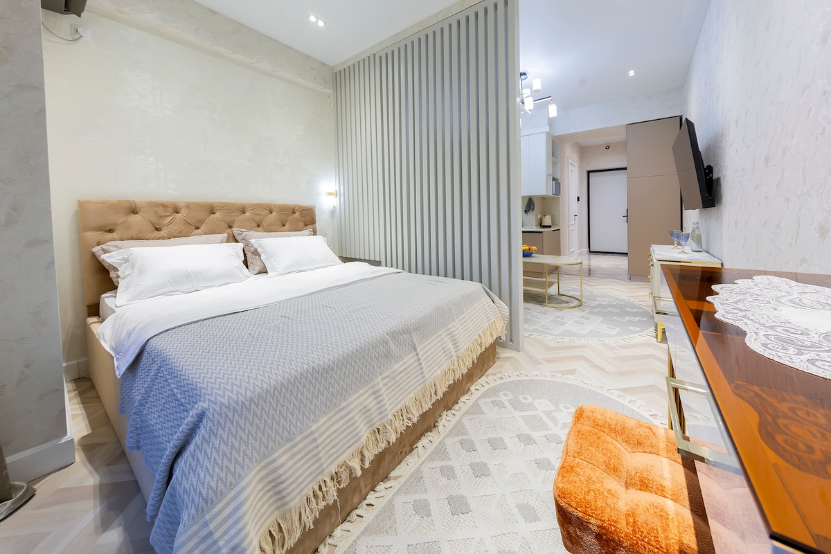 Estudi amb estil al nou edifici Prestige Gardens, situat a 5 minuts de l'aeroport i de l'estació del sud. - 1 llit «king size». - 1 sofà reclinable - Acabat de renovar Hi ha de tot per gaudir d'una estada còmoda: - Wifi, televisor intel·ligent - Nevera, rentadora. - Una cuina equipada. - Aire condicionat, planxa, assecador de cabells - Aparcament gratuït a prop de l'edifici. - Estació de càrrega de vehicles elèctrics - Ubicació còmoda, a 10 minuts en cotxe del centre de la ciutat. - Disponibilitat de restaurants i supermercats a prop.