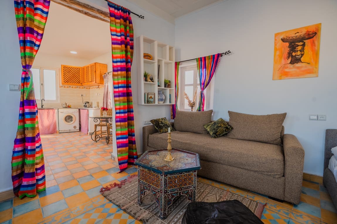 Aquest allotjament únic, a l'entrada de la Medina, és un dels apartaments amb terrassa més bonics d'Essaouira! La planta superior i la terrassa privada es troben al nivell més alt del districte de Méchouar (casa construïda el 1835). Aquest «loft» de 140 m ² ja està disponible per als viatgers privilegiats que el reservin. Terrassa moblada i vista panoràmica de 360° a prop de tots els llocs d'interès i serveis, per la qual cosa és fàcil planificar la teva visita a Essaouira.