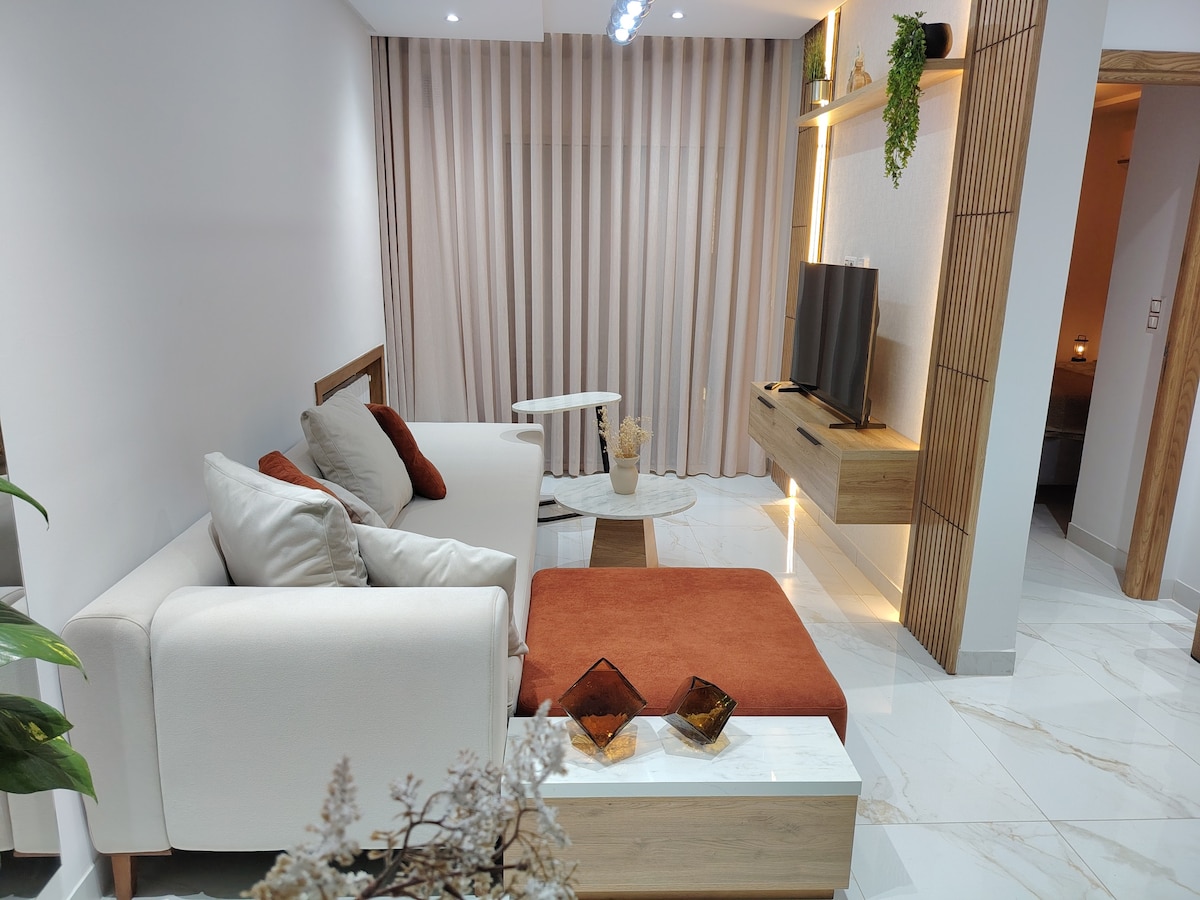 Descobreix un apartament de luxe amb vistes al mar al cor de la ciutat. Desperta't amb vistes al Mediterrani des de dos dormitoris i gaudeix d'un cafè a una impressionant terrassa amb vistes a la costa. Situat a prop de la Medina i a pocs minuts en taxi de Port El Kantaoui, aquest espai elegant ofereix mobiliari d'alta gamma, una cuina ben equipada, wifi, televisor intel·ligent i comoditats modernes. Dos dormitoris amb llits «king size», un bany d'estil italià i un espai de treball garanteixen un refugi urbà perfecte amb accés fàcil a cafeteries, restaurants i bars.