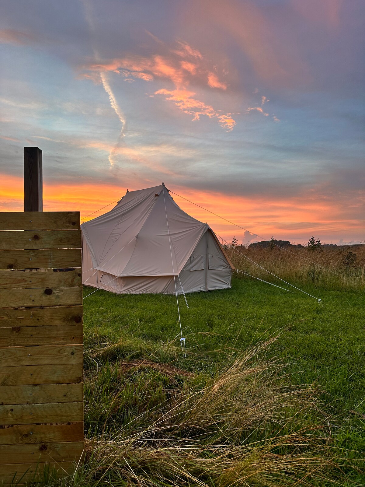 Dorm sota les estrelles en un entorn tranquil. T'allotjaràs en una gran tenda Lotus Belle Stargazer (Ø 6m), amb accés a un vàter de compost i aigua dolça, foguera (es pot comprar llenya). La tenda està tranquil·la en un entorn rural, a prop d'una platja fantàstica, d'un port acollidor i d'un bosc. No hi ha trànsit i amb una bona oportunitat per gaudir d'un refugi tranquil de la vida quotidiana. Escolta els ocells, sent la gespa entre els dits dels peus i gaudeix de la pau. Hi ha gallines domèstiques i curioses de corral. Hola!