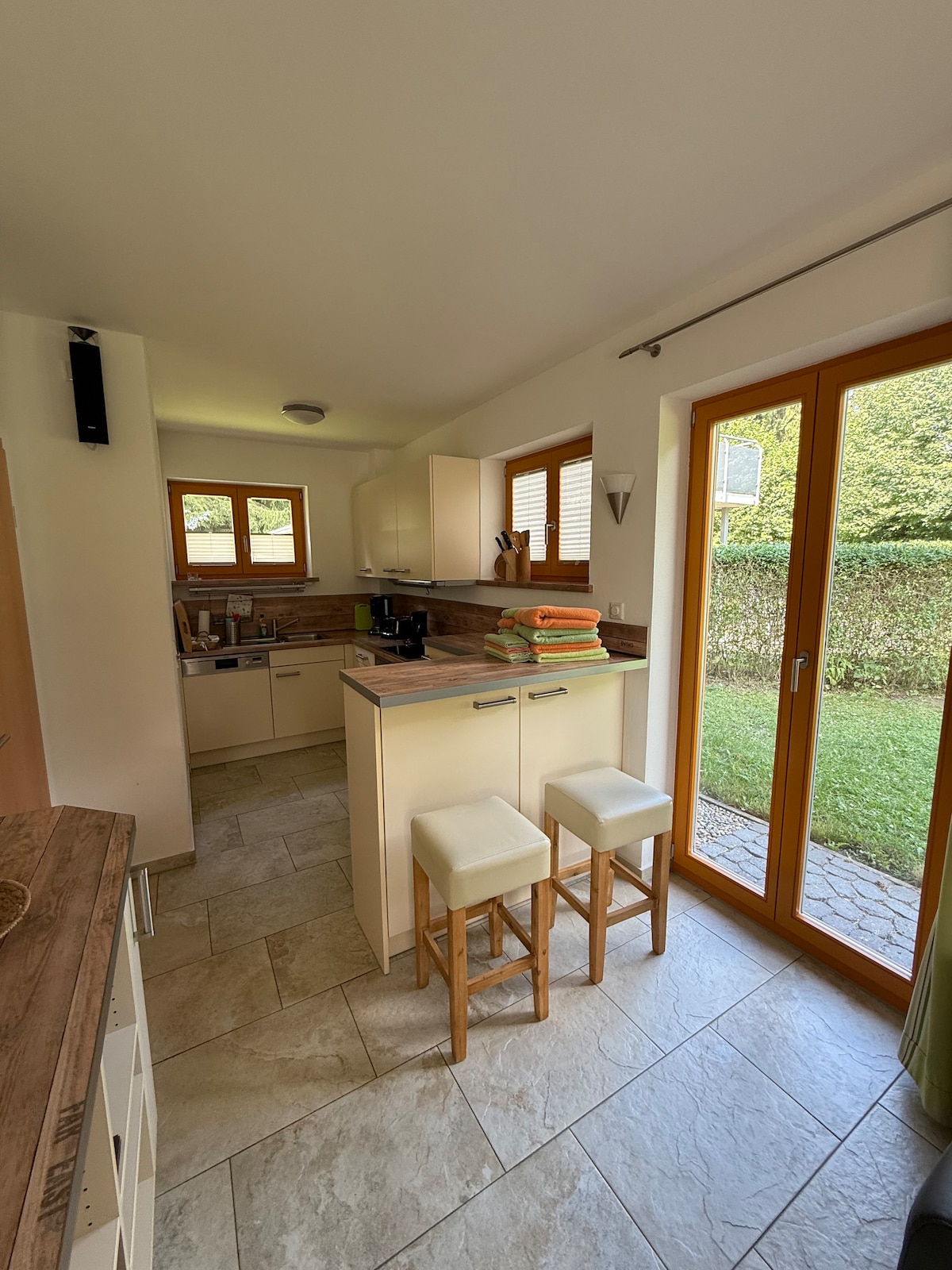 Us dono la benvinguda, estimats hostes, al nostre pis amb terrassa i plaça d'aparcament privada, situat entre el llac i el bosc. Internet d'alta velocitat, rentadora, assecadora i rentaplats. A 8 minuts de l'autopista, a 2 minuts del llac, en un lloc tranquil Autèntica pizzeria italiana i botigues al poble; 6 restaurants a poca distància a peu; Ideal per a dues persones / per a estades curtes, 4 persones com a màxim; Característiques: - Cuina de 25 m², totalment equipada; - Zona de dormitoris: llit sòlid d’1,6 m + llit individual, - El bany és nou. Terrassa moblada + gandules, Fumar a l'exterior