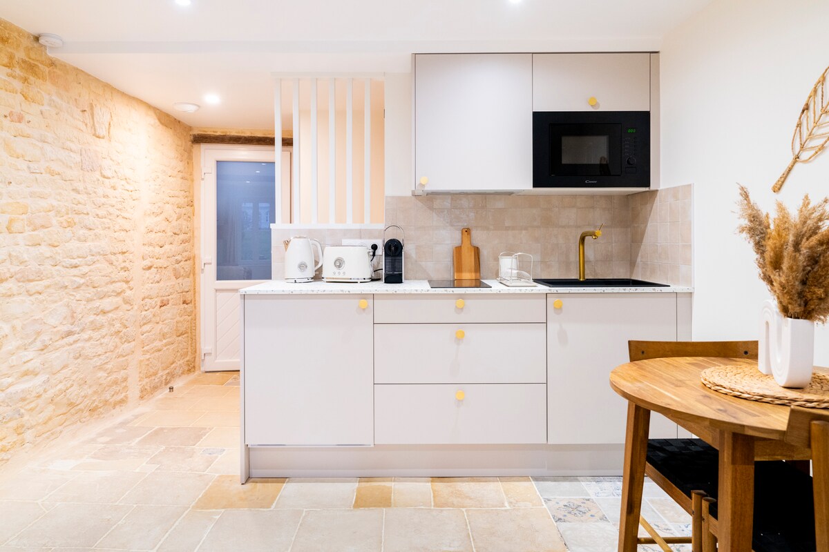 Benvingut! Posa l'equipatge en aquest encantador dúplex totalment renovat en un edifici del segle XVIII al cor del centre històric de Caen i arriba al ritme de l'estil de vida francès. Les pedres exposades, la llar de foc, la porcellana de Limoges i les magnífiques vistes dels campanars de la famosa Abadia aux Hommes et transportaran a l'època de Guillem el Conqueridor mentre t'ofereixen la comoditat d'un apartament modern.