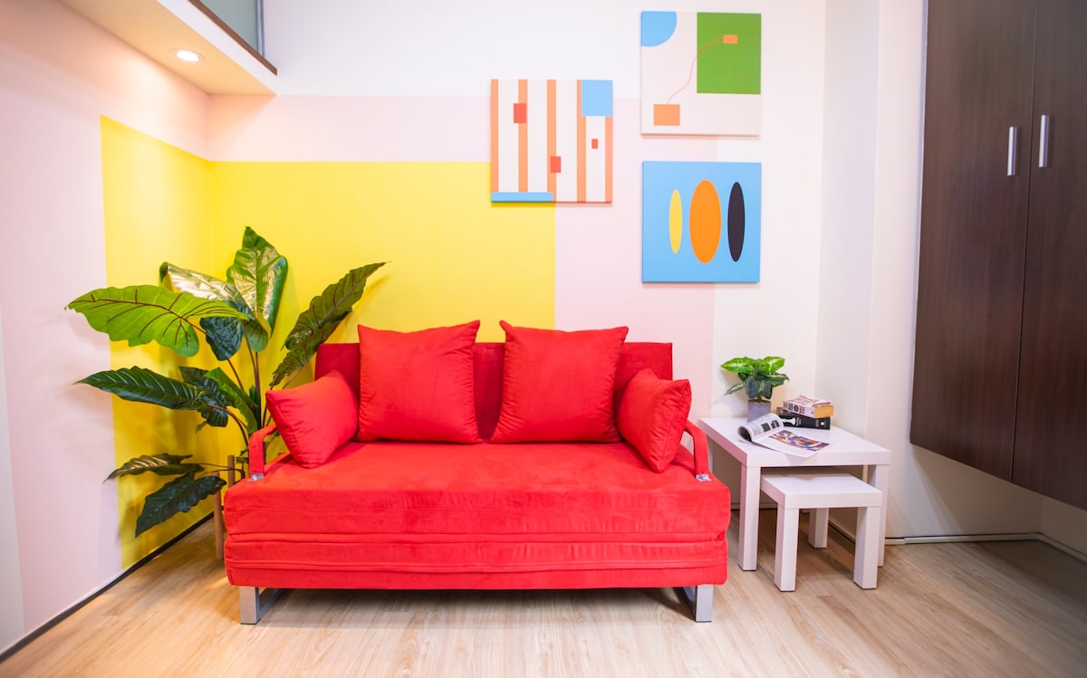 西門紅樓3F公寓。 客廳爲Loft空間, 非夾層挑高。2張雙人床加雙人沙發床。離西門捷運走路3分鐘/250公尺而已。獨立門戶。 870 平方呎! 空間超大!! 全新裝修, 並且隨時維持裝修如新。棉被與毛巾定期更新。 公寓一層一戶, 非常安靜。超大空間, 客廳, 大餐廳, 獨立空間完整廚房, 獨立衛浴/免治馬桶, 洗衣機/烘衣機, 一應俱全!! 全公寓使用電力, 沒有瓦斯, 十分安全。 配備藍牙喇叭,網路TV (Disney+, YouTube Premier) , 微波爐, 冷暖氣機, 除濕機。國際插座, USB. RO 淨水器 熱水器. 位於台北最熱鬧的西門町商圈, 卻又在安靜巷內, 好玩, 好吃, 好買. 一下樓就是最有特色的西門紅樓/酒吧街/7-11。 提供indoor hi speed WiFi and 4G Mobile WIFI, 室內出外都能使用。電子鎖, 24小時都能入住!! 從機場捷運到台北車站, 只要再轉台北捷運一站就到西門站了! 西門站為捷運藍線與綠線的交叉站, 交通超方便! 房屋爲房東自有, 請安心入住。屋主中英文精通。