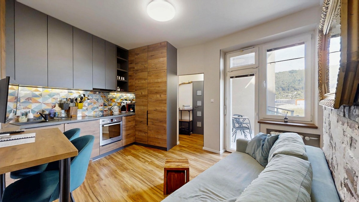These Studio Apartments are part of Fatrapark 2 in Hrabovo, right next to the Malino Brdo Ski&Bike Park Ruzomberok. Each Studio is furnished in different style. In apartment, there is always a double bed (can be also separated for twin bed if needed), single sofa bed for third person, kitchenette, TV, bathroom, and dining table / or bar. Some apartments also have balcony. Balcony on request. Breakfast is for 11,99 € person/day. Pets are allowed for 20€/stay.