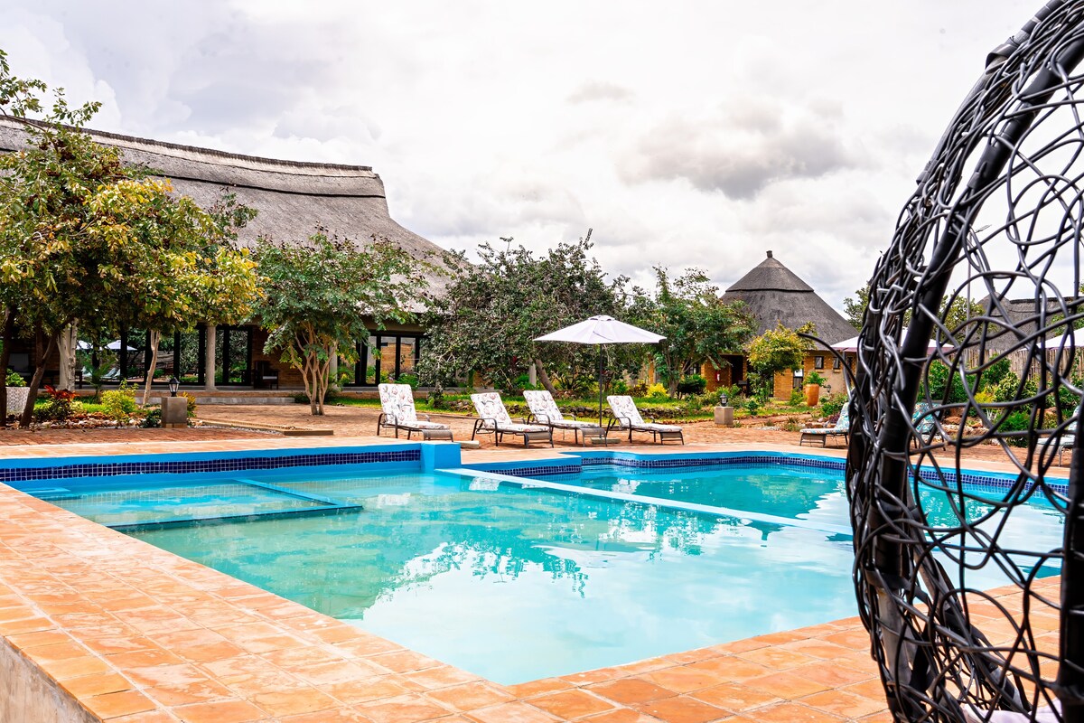 Wandile uMuzi Lodge es troba a un pas de Bulawayo, a pocs quilòmetres del santuari de jocs de Tshabala i es troba a les portes del majestuós parc nacional Matopos. A Wandile uMuzi Lodge tenim 3 xalets independent. Aquest xalet en particular es troba en un turó i pot portar un màxim de 2 persones A l'interior de cada xalet, amb bany privat i cuina. A la zona de la cuina hi ha una cuina elèctrica de 3 plats i una nevera petita. Cada xalet també té una parada privada de Braai