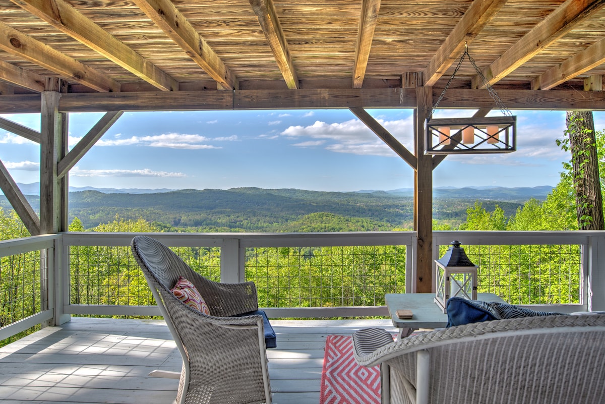 Situada a la part superior de Pinnacle Mountain, la nostra acollidora caseta té UNES VISTES ESPECTACULARS de la zona de Hendersonville/Asheville. La nostra caseta és acollidora i és una escapada perfecta si vols explorar l'oest de Carolina del Nord. Aquest allotjament de dos dormitoris i dos banys està acabat de renovar amb roba de llit nova, taulells de granit, terres de fusta, un nou racó per esmorzar, una terrassa espaiosa i una sensació molt relaxant. La nostra caseta pot dormir fins a 6 persones còmodament. Tenim vistes FANTÀSTIQUES i un allotjament còmode per a la teva escapada.
